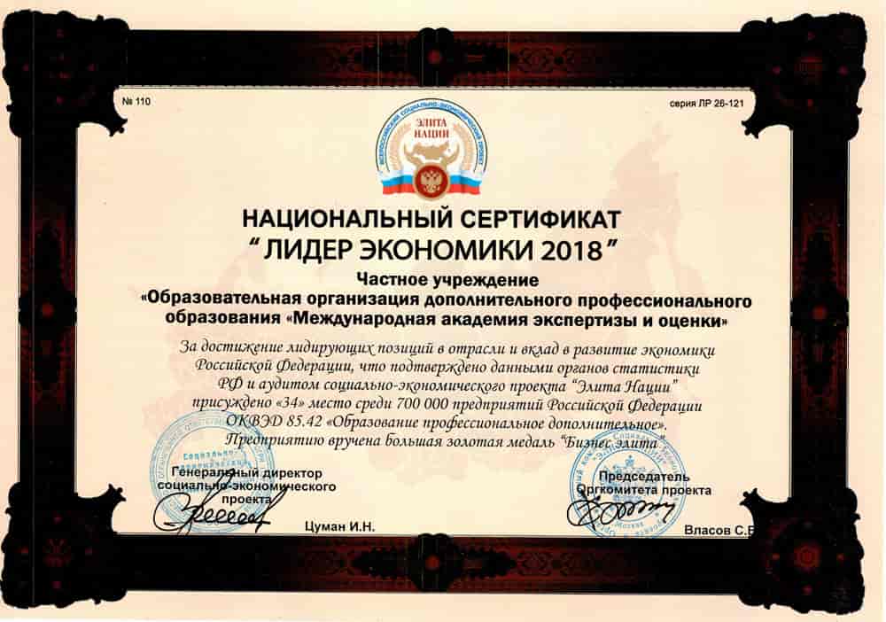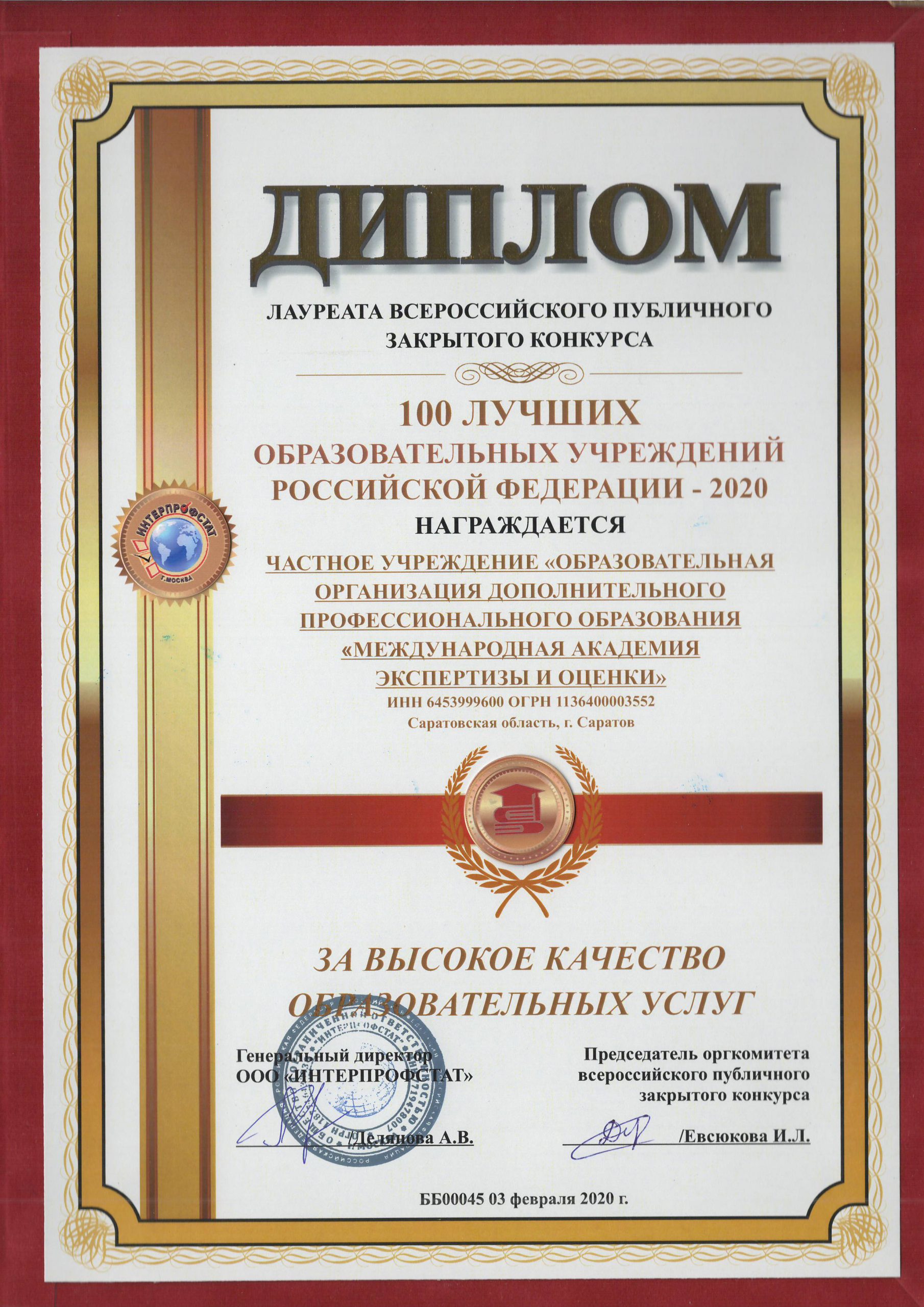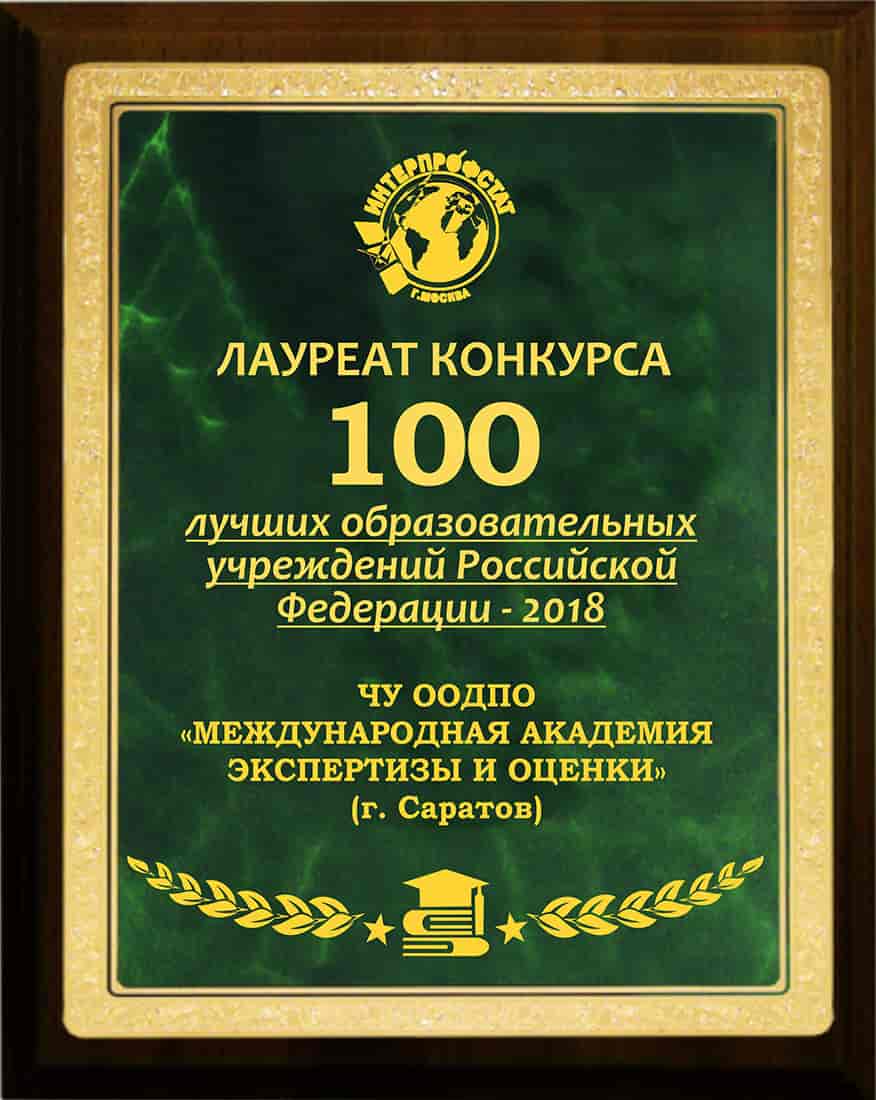 - ТОП-100 лучших образовательных учреждений России по данным Интерпрофстата в 2018 г.;